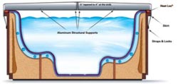This patented ultra energy efficient 4” cover features a silver reflective lining, a bumper seal through the centre fold and around the outside perimeter to ensure that the heat stays in and the cold stays out. There is simply not a better cover.